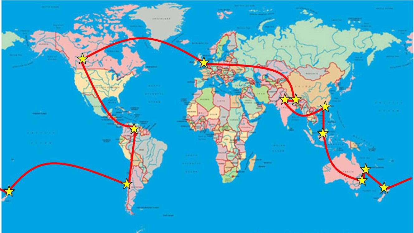 The map shows our route. Hover over the stars for dates and